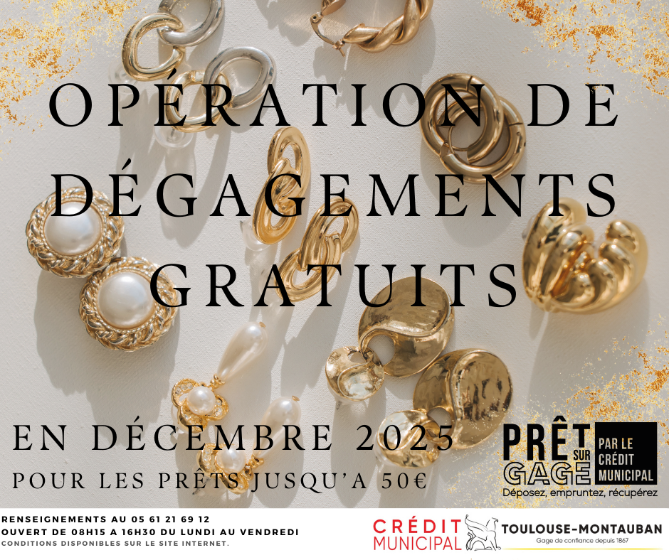 À l’approche des fêtes de fin d’année, le Crédit Municipal de Toulouse et de Montauban réitère son opération de restitution gratuite d’objets déposés en gage.