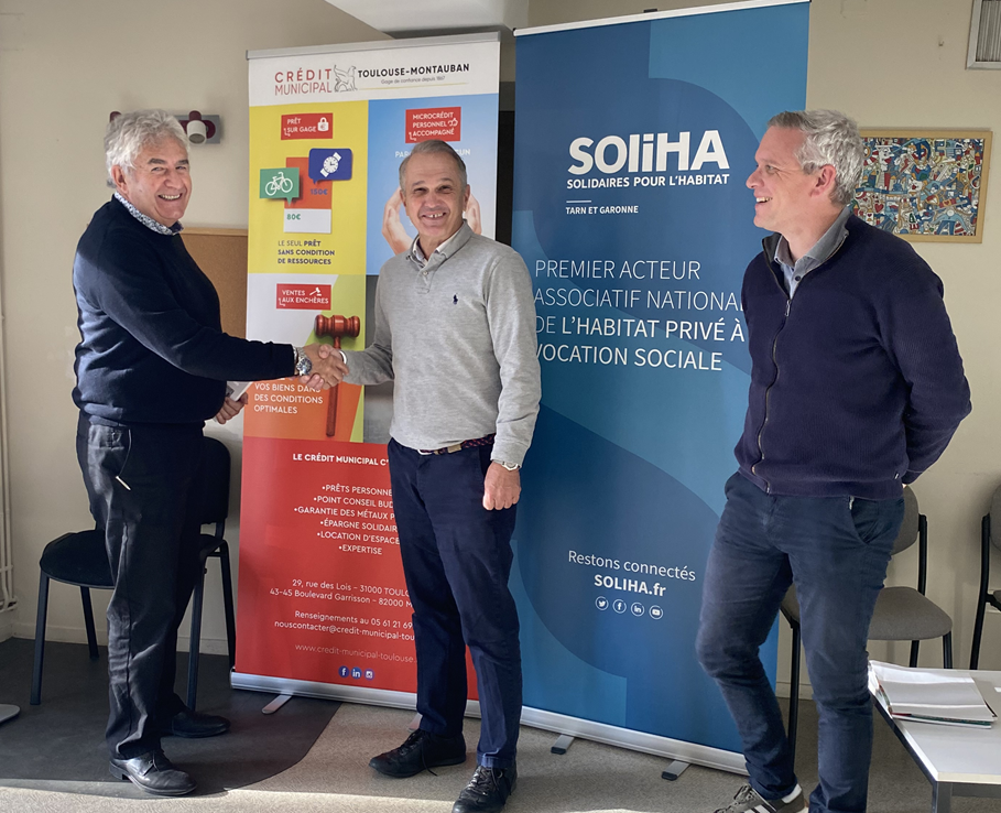 Monsieur Serge BASTIANI Président de SOLIHA Tarn-et-Garonne, Monsieur Gildas POIRIER, Directeur Territorial et Monsieur Franck PAINDESSOUS, Directeur du Crédit Municipal de Toulouse, ont signé une convention de partenariat le mardi 18/11/2025. Cet accord marque la durabilité d’une collaboration visant à développer l’accès au microcrédit personnel accompagné dans le département du Tarn-et-Garonne. Ensemble, les deux structures s’engagent à accompagner les personnes en difficulté financière vers des solutions de financement responsables et solidaires.